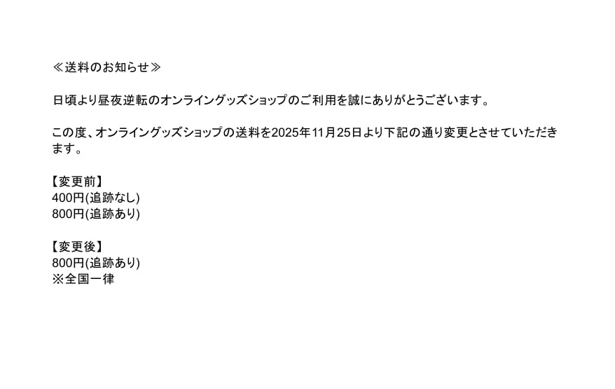 2025年11月25日より送料が